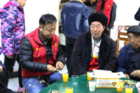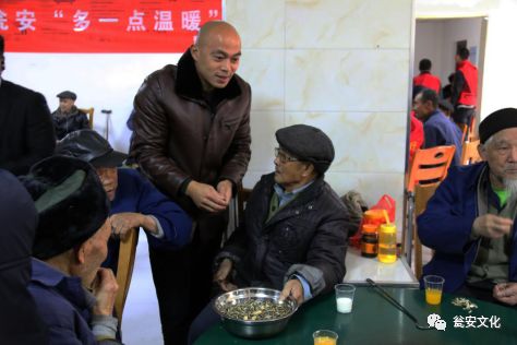 甕安喜格珠寶董事長鄭國松與老人交談 一聲聲誠摯的問候,傳遞著愛心人士樸素而真摯的情感,一句句樸實的的話語,表達(dá)著淳樸而真實的祝福。在這次活動中甕安縣星光貝貝兒童攝影總經(jīng)理龍勇先生希望可以每一年都來義務(wù)給這個大家庭拍全家福,甕安縣迪斯樂游樂中心魏總、紫怡閣茶藝會館總經(jīng)理徐總微笑著對老人說:“以后你們喝的茶葉我們包了,還承諾專門為老人們準(zhǔn)備一個大茶壇,定期來為老人送茶葉,告訴他們多喝茶對身體健康有保障”,老人們給他豎大拇指,歡笑中充滿期待。