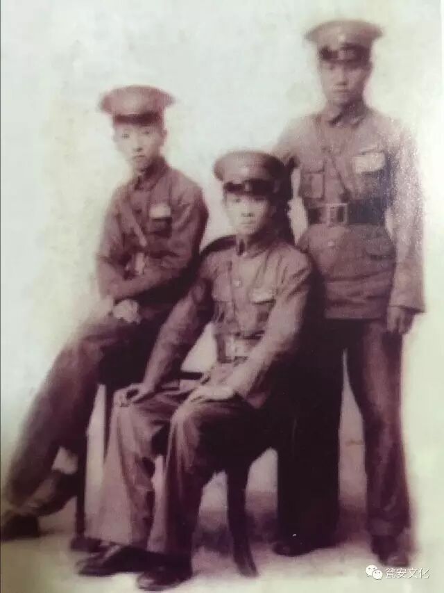 1932年4月,舒葆初(中)和戰(zhàn)友曾元三(左)、黃克勤(右)攝于崇陽