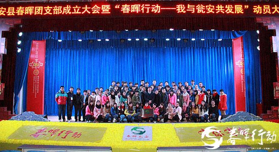 甕安縣首個(gè)春暉團(tuán)支部成立“我宣布,甕安縣春暉團(tuán)支部正式成立!”1月24日,甕安縣春暉團(tuán)支部成立大會(huì)暨“春暉行動(dòng)——我與甕安共發(fā)展”系列活動(dòng)動(dòng)員大會(huì)在甕安中學(xué)大禮堂隆重舉行,甕安縣委副書(shū)記張寬、甕安縣委常委、宣傳部長(zhǎng)、統(tǒng)戰(zhàn)部長(zhǎng)曾薇、甕安縣人大常委會(huì)副主任羅惠平、甕安縣教育局局長(zhǎng)謝靜以及甕安縣各中學(xué)校長(zhǎng)、各鄉(xiāng)鎮(zhèn)團(tuán)委書(shū)記出席會(huì)議,來(lái)自甕安的青年企業(yè)家代表、返鄉(xiāng)大學(xué)生、青年教師、高三學(xué)生1700多人參加了會(huì)議。會(huì)議由共青團(tuán)甕安縣委副書(shū)記徐燕主持。