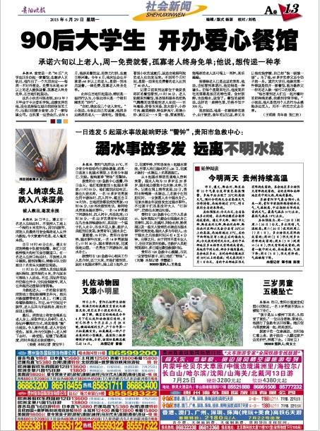 本報(bào)訊 甕安縣一名“90后”大學(xué)生回鄉(xiāng)辦起一家餐館,生意步入正軌后,他作出了一個(gè)大膽決定——每周一不對(duì)外營(yíng)業(yè),免費(fèi)為本地60歲以上的老人提供就餐,孤寡老人終身免單,在當(dāng)?shù)匾疝Z動(dòng)。