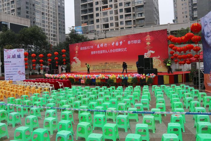 甕安縣2017年“春暉行·中國夢”春節(jié)聯(lián)誼暨青年致富帶頭人協(xié)會授牌儀式在甕安縣人民廣場舉行